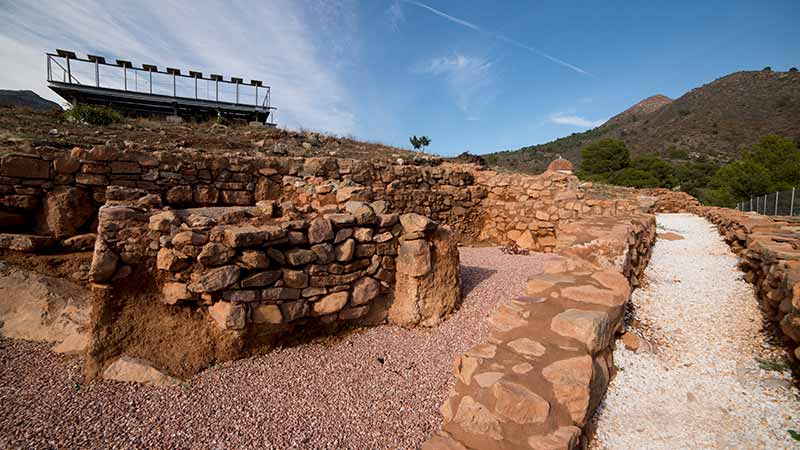 La muralla se construyó con mampostería, un trabajo realizado con piedras desiguales y ajustadas. Aunque hasta el momento sólo se ha excavado el 20% del asentamiento, este yacimiento es un magnífico ejemplo de urbanismo ibérico, conservando buena parte de su acrópolis, gran parte de la muralla (más de 40 m), tres torres cuadradas, calles, escaleras, casas y otros restos de gran importancia histórica.